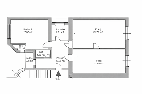 Dispozice bytu umožňuje jednoduchou úpravu na moderní 3+kk.