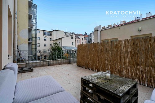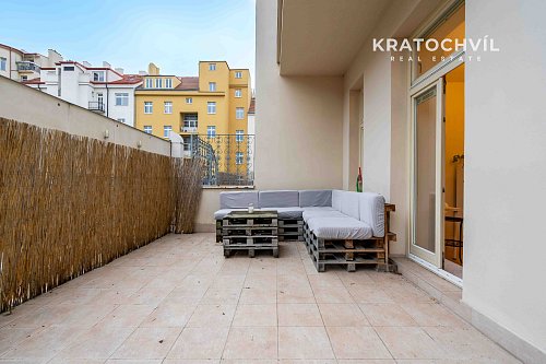 Byt má podlahovou plochu 27 m2, společnou chodbu 3 m2, terasu 22 m2, okna jsou nasměrována do klidného vnitrobloku na jihovýchod.