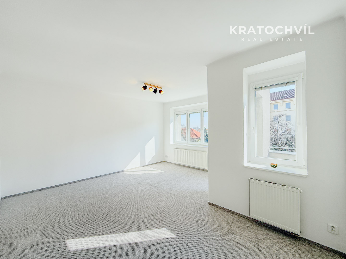 Na kuchyň navazuje prostorný a světlý pokoj s výstupem na balkon, který poskytuje příjemné místo pro ranní kávu nebo večerní odpočinek.