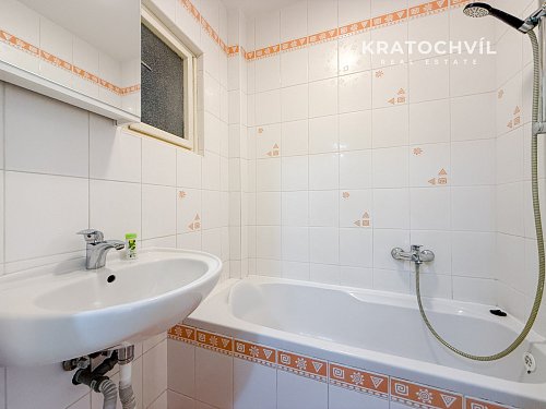 Koupelna je vybavena vanou, vytápění a ohřev vody zajišťuje vlastní plynový kotel, což umožňuje regulaci nákladů na energie.