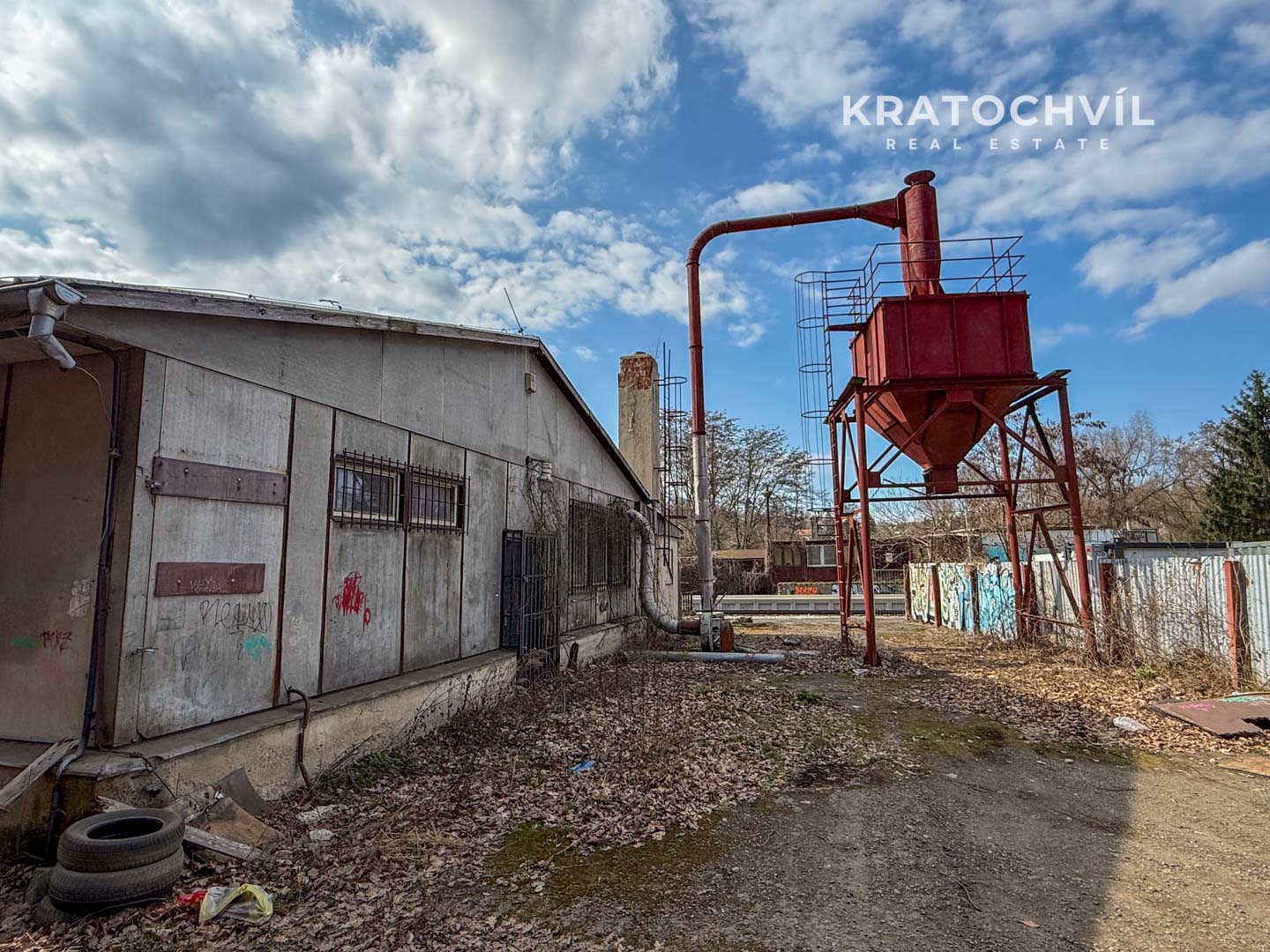 Budova se nachází na pozemku se zahradou 1 075 m², která může sloužit například jako manipulační plocha, parkování nebo venkovní sklad.